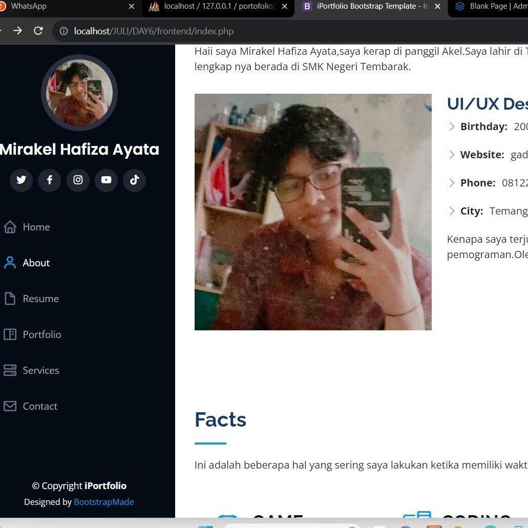 Haii saya Mirakel Hafiza Ayata,saya kerap di panggil Akel.Saya lahir di Temanggung pada 4 Agustus 2005.Saya duduk di bangku sekolah tingkat SMK,lebih lengkap nya berada di SMK Negeri Tembarak.